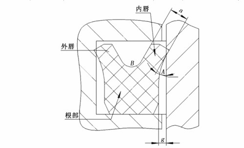 內(nèi)唇和活塞外唇和缸體夾角的大小直接意義著密封唇嘴和其相應(yīng)接觸面的接觸面積的大小。夾角越大,密封唇嘴和其相應(yīng)接觸面的接觸面積越小,這給低壓密封效果意義不大,但給較高壓密封效果要更有意義。