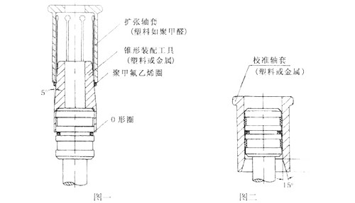 在溝槽中放入O型圈(不得扭曲),再將聚四氟乙烯密封圈PTFE)套入錐形裝配工具,并用擴(kuò)張軸套將它一直推入溝槽中,在這一過(guò)程中聚四氟乙烯圈被擴(kuò)張。用內(nèi)徑與液壓缸徑相符的校準(zhǔn)軸套,促使擴(kuò)張的聚四氟乙烯復(fù)原。
