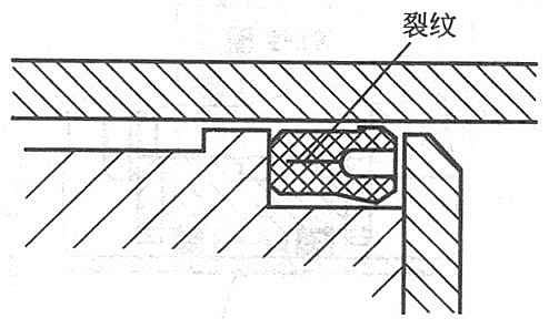 Y形密封圈的某些嚴(yán)酷條件下使用時(shí),可能出現(xiàn)圖2所示的裂紋。例如在高溫高壓下使用的Y形圈密封件產(chǎn)品常產(chǎn)生這種現(xiàn)象,裂紋導(dǎo)致密封失效而漏油。