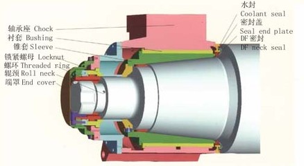 油膜軸承又稱液體摩擦軸承,它是理想的液體摩擦狀態(tài)的滑動(dòng)軸承。軋機(jī)在工作過程中,利用液體潤滑在錐套與襯套之間的模形間隙中形成完整的壓力油膜,產(chǎn)生模形效應(yīng),油膜完全將高速相對(duì)運(yùn)轉(zhuǎn)的錐套、套間隔開,而不發(fā)生直接的金屬接觸。油膜軸承在旋轉(zhuǎn)過程中具備了很強(qiáng)的承載能力。軋機(jī)油膜軸承的工作環(huán)境非常惡劣,除了要經(jīng)受大量冷卻水的沖刷,還要受到軋制過程中產(chǎn)生的大量氧化鐵皮等雜質(zhì)侵人油膜軸承的危險(xiǎn),與此同時(shí)還需要滿足軋制速度在 0-40 m/s 的變化,及環(huán)境溫度的變化等。為了使油膜軸承能適應(yīng)這種環(huán)境,有良好效果的密封就非常重要了。隨著我國現(xiàn)代大型軋機(jī)設(shè)備及軋機(jī)油膜軸承的高速發(fā)展,密封裝置作為油膜軸承非常重要的一個(gè)部分,密封件技術(shù)和結(jié)構(gòu)也逐步進(jìn)行了改進(jìn)。在我國曾經(jīng)廣泛應(yīng)用在大型軋機(jī)上的是X型密封圈,以及在X型密封圈基礎(chǔ)上改進(jìn)后使用更廣泛,目前最先進(jìn)的是DF型密封圈。