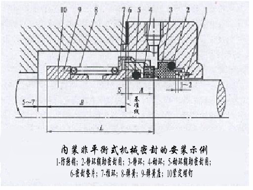機械密封件的安裝順序,在安裝準備工作完成后,就可按一定順序實施安裝,完成靜止部件在端蓋內安裝和旋轉部件在軸上的安裝,最后完成密封的總體組合安裝。以圖1所示的離心泵用單端面內裝非平衡式機械密封為例,其安裝順序介紹如下: